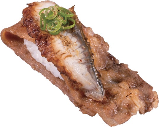 山椒香る 大切り牛カルビのうなぎ炙り寿司
