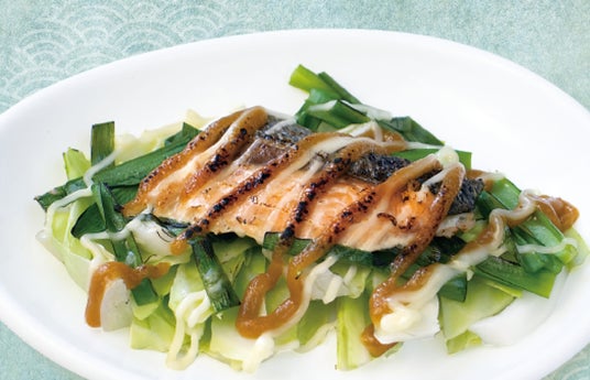 鮭のちゃんちゃん焼きをサラダ仕立てに。野菜と一緒にさっぱりといただけます。
