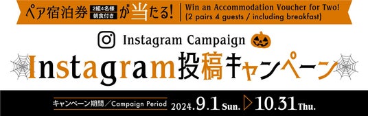 パティシエ特製の暗闇のコーラ竹炭ロールケーキ、魔法の竹炭プティシュークリーム、パンプキンモンブラン、ミイラマカロンなどの他に、かぼちゃとベーコンのキッシュ、合鴨のブラッドベリ―、茄子とズッキーニのグラタンなど秋の味覚が食べ放題。また、ライブキッチンでは、目の前で焼く焼きたてステーキもお愉しみいただけます。期間中はペア宿泊券が抽選で当たる「Instagram投稿キャンペーン」を実施いたします。