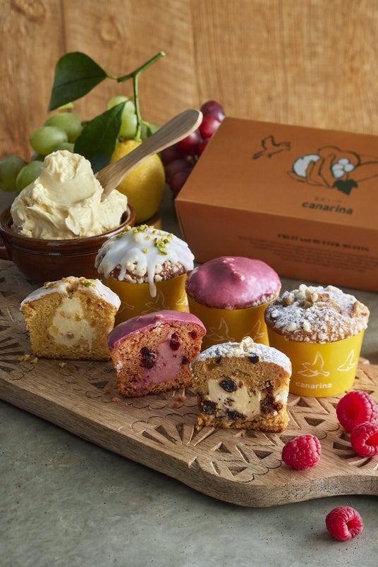 「果実とバター canarina」では、毎日オープンから数量限定にて『果実とバターのマフィン』を販売しております。しっとりと口当たりの良い生地に、たっぷりの果実とバターをご堪能いただける、人気商品です。
