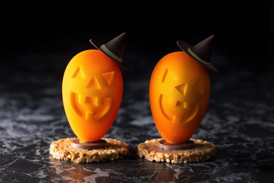 おばけが飛び出る遊び心満載のケーキは、魔女の釜をイメージした想像力を掻き立てるキュートな仕上がりに。シュトロイゼルクッキーの上に重ねたホワイトチョコレートとバニラムースの甘みとグリオットチェリーやカシスクリームの甘酸っぱさのマリアージュがお楽しみいただけます。周りにあしらったココナッツ、飾りのチョコレートが食感にアクセントを添えます。