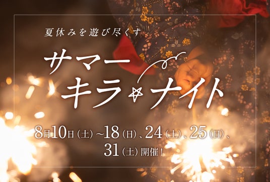株式会社 Kiranah Resort(読み:キラナリゾート、本社:東京都千代田区)が運営する屋外レジャー・レストランの複合施設「キラナガーデン豊洲」は、夏の風物詩を体験できる『サマーキラ★ナイト』イベントを、8月10日(土)~31日(土)まで定期的に開催いたします。大人から子供まで、懐かしさを感じながら楽しめるコンテンツを多数ご用意。夏の想い出づくりにぜひキラナガーデン豊洲にご来場ください。