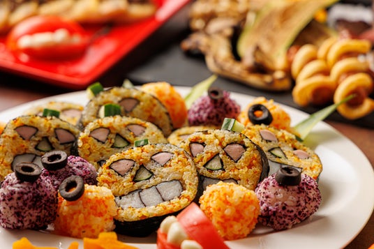 お寿司(ジャックオランタンの飾り寿司・葡萄の軍艦・鮪・サーモン・海老・玉子・烏賊)