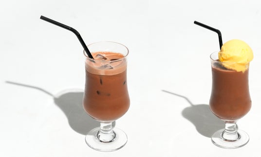 (左)【のむチョコ -プレーン-】(右)【のむチョコフロート(マンゴー)】(イメージ)