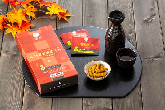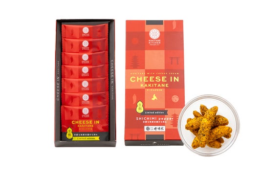 京都七味家本舗(しちみやほんぽ)は、江戸時代の1655年[明暦年間]より、京都・清水寺参道で七味唐辛子を販売している老舗です。日本三大七味唐辛子の一つとして名高い、七味家の七味唐辛子は、山椒が効いた辛さ控えめな味が特徴であり、一子相伝の秘伝のレシピで作られています。この伝統の七味が意外にも『チーズinかきたね』との相性が抜群だったことから、関西発の和と洋のコラボレーション『チーズinかきたね 京都七味家本舗の七味味』が誕生しました。伝統あるこだわりの七味を贅沢にまとったその味はまさに新感覚。未体験の美味しさをお届けいたします。