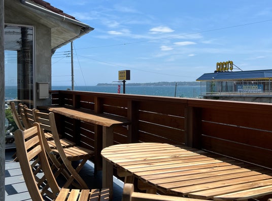 2階からは、三浦海岸を望むことができます。2階のフロアには、、「自愛、セルフケア」をコンセプトにした喫茶店が同時オープン。疲れた心や身体(からだ)を植物の力で癒す、そんな思いで作られた店舗は、ゆったりと寛いでいただける空間となっています。喫茶店と言っても、コーヒーはメニューにありません。