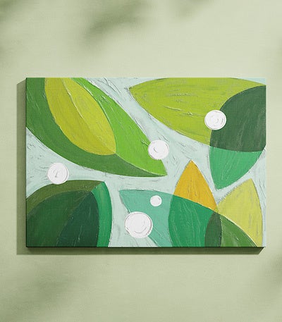 朝に飲まれることを想定したLocaf Blend 70にピッタリのこの油絵は、朝の白露が輝く葉っぱを見事に描写しています。絵全体から静かな朝のひんやりとした空気と、自然の美しさが伝わってきます。