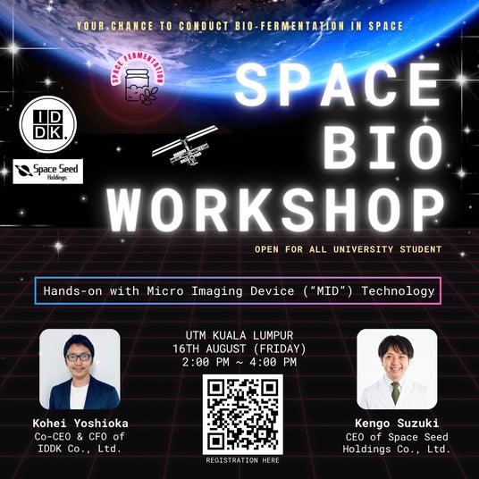 スペースシードホールディングス株式会社(本社:東京都港区、代表:鈴木健吾、以下「スペースシードホールディングス」)は、株式会社IDDKと協力して、2024年8月16日(金)にマレーシア工科大学で、現地の学生とのセッションやワークショップを通じて宇宙発酵技術を学ぶ「Space Bio Workshop」を開催します。