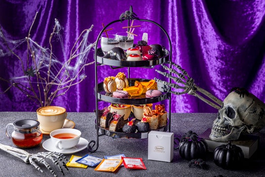 ハロウィンの魔法に包まれた秋の午後、幽霊たちが集うおしゃれなティーサロンをイメージしたアフタヌーンティーが登場します。ゴーストや魔女がテーマの7品のスイーツで、ちょっぴり不気味で楽しいこの季節ならではのひとときをお届けします。