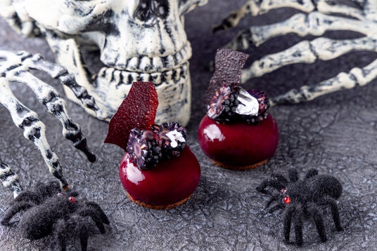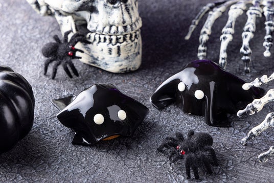 目玉の形をした「フランボワーズとミルクのムース」は、その名の通りアイキャッチーなスイーツ。好奇心旺盛な目玉がハロウィンスイーツに目を輝かせています。つるんとした黒い「おばけタルト」は、竹炭入りのジュレが独特の食感です。真っ黒なジュレの下に隠れた新鮮なフランボワーズが、まるで美味しい心臓のよう。フランボワーズとライチのクリーム、サクサクのタルト、そして竹炭ジュレの絶妙な組み合わせで、楽しくユニークな味わいをお届けします。