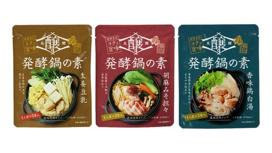 大関株式会社(社長:長部訓子/兵庫県西宮市)は、1711年から続く酒造りで培った発酵技術を活かし、手軽に本格的な味わいの発酵鍋が楽しめる『大関醸す(かもす) 発酵鍋の素』シリーズより、「生姜豆乳」「胡麻みそ担々」「香味鶏白湯」の3商品を2024年8月26日(月)から期間限定で再発売します。
