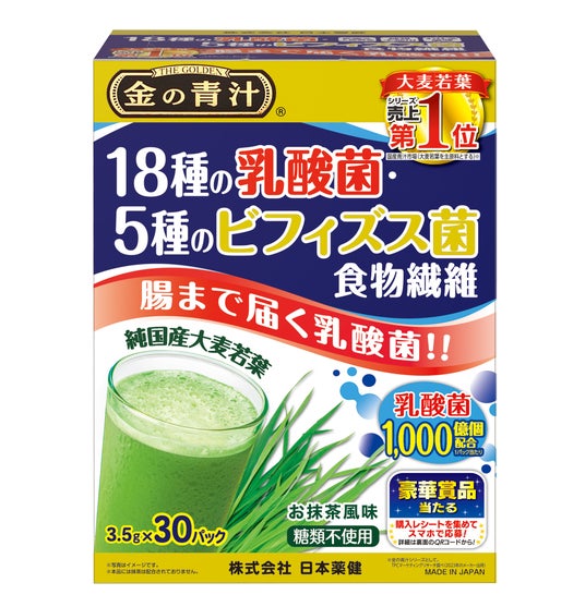 日本薬健は、今後も「金の青汁 18種の乳酸菌・5種のビフィズス菌 食物繊維」をはじめ、お客様に寄り添い、毎日の健康をサポートする商品開発に取り組んでまいります。