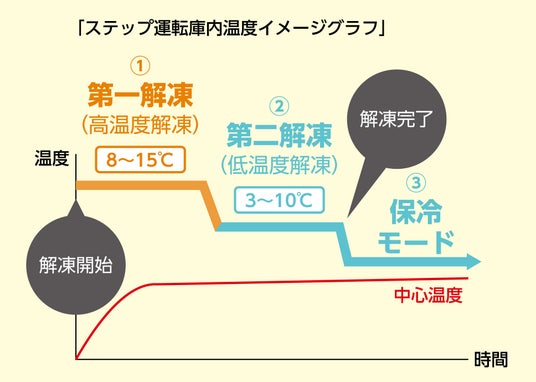 ■2ステップ高品質解凍のステップ運転機能付解凍庫