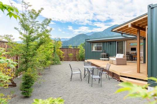 ドームテントのあるエリアから徒歩1分の敷地にあるグランピングキャビンは一棟貸切タイプのプライベートキャビンです。 ホテル仕様の完全プライベート空間の客室は、冷暖房はもちろん充実の専用設備を完備。アウトドア初心者の女性や子供にも安心して快適にご滞在いただけます。 プライベートガーデン付でお食事や花火もお楽しみいただけます。