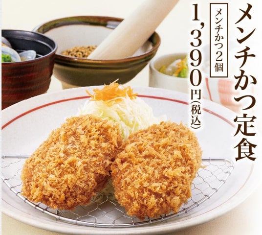 □メンチかつ定食牛肉と豚肉の比率にこだわり、店舗で1つ1つ丁寧に仕込んでいます。肉汁のジューシーさ、衣のサクサク加減がたまりません。