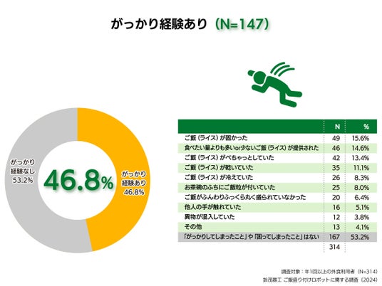 ご飯盛り付けロボットに関する調査2024/鈴茂器工 外食の際にご飯でがっかりしたこと