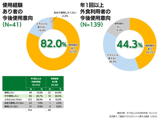 一方で、ご飯盛り付けロボット使用経験者の使用意向についてはN=50と少ないながらも