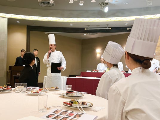 毎年7月に、その年の新作クリスマスケーキを決定するホテル内コンテストを実施しており、今年は、新入社員の作品が見事グランプリに輝きました。当ホテルのコンテストでは、過去に入賞を重ねたベテラン勢が指導役となり、特に技術面を支援することで若い世代でも高いレベルの作品を出品できるようワンチームとなってコンテストに臨んでおります。