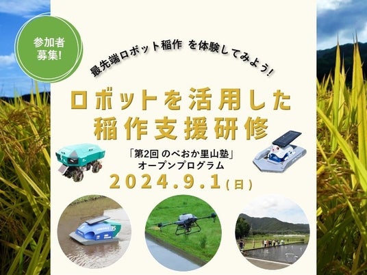 株式会社テムザック(本店:京都府京都市、代表取締役社長:川久保 勇次、以下「テムザック」)は、延岡市が開催する「令和6年度 のべおか里山塾」の一環として行われる「ロボットを活用した稲作支援研修」プログラムに、運営事業者として参画いたします。研修は、計3回実施予定で、初回は2024年9月1日(日)に行われます。