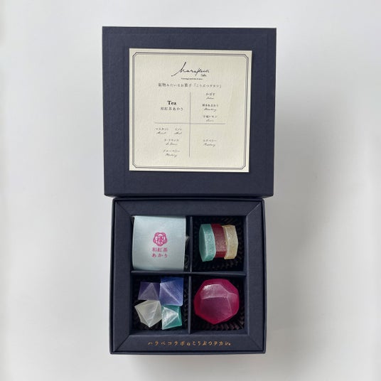 「ArtなFoodであそぶ」をテーマにプロダクトを展開するメルティングポットハラペコラボ株式会社(所在地:福岡県福岡市、以下 ハラペコラボ)から、代表作の鉱物みたいな琥珀糖「こうぶつヲカシ」の新作【こだわりのこうぶつヲカシと和紅茶セット】が登場。