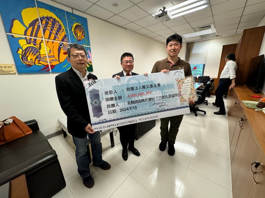 本商品の国内売上分から、消費税、資材費を除く400万円の寄付を決定し、7月15日に台湾 衛生福利部庁舎(Office of Ministry of Health and Welfare)にて寄付金の贈呈セレモニーを執り行いました。同セレモニーには台湾から衛生福利部副大臣 呂 建徳(Jen-Der Lue)氏と、弊社代表 稲垣貴彦が出席しました。今回の寄付が、一日も早い台湾被災地域の復興の一助となれば幸いです。