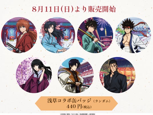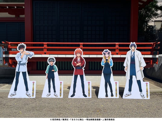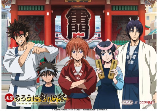 浅草るろうに剣心祭の開催期間中、浅草神社にるろうに剣心のキャラクターの描き下ろしイラストの等身大パネルが展示されます。