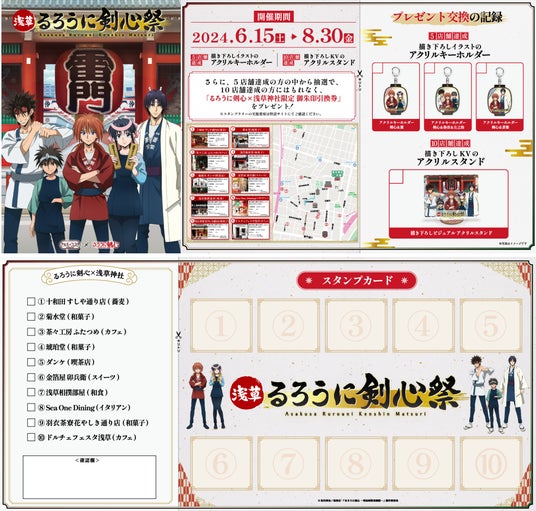 さらに、スタンプラリーで5店舗達成された方には抽選で、10店舗達成された方には全員に「るろうに剣心」×「浅草神社」限定の御朱印引換券をプレゼントいたします。