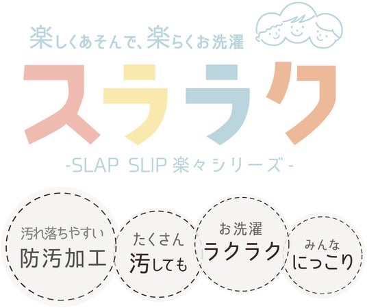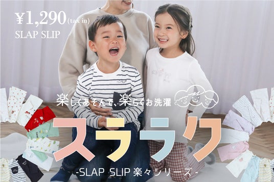神戸発、子供アパレルの株式会社べべ(本社:兵庫県神戸市、代表取締役社長:卜部 正寿)が展開する「SLAP SLIP(スラップ スリップ)」より、楽しくあそんで、楽らくお洗濯ができる「スララク」楽々シリーズが新登場!8月9日(金)よりSLAP SLIP(スラップ スリップ)全国57店舗、BEBE公式オンラインストア(BEBE MALL)にて同時発売。