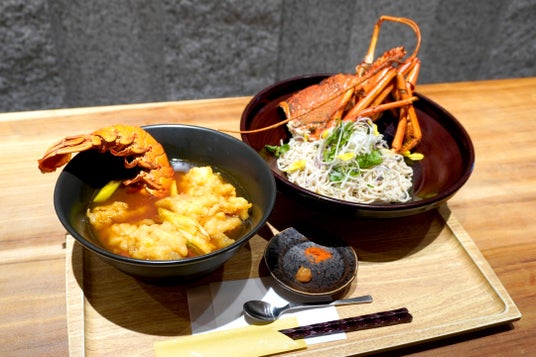 ▲常陸乃国いせ海老を使って再現された天ぷらそば