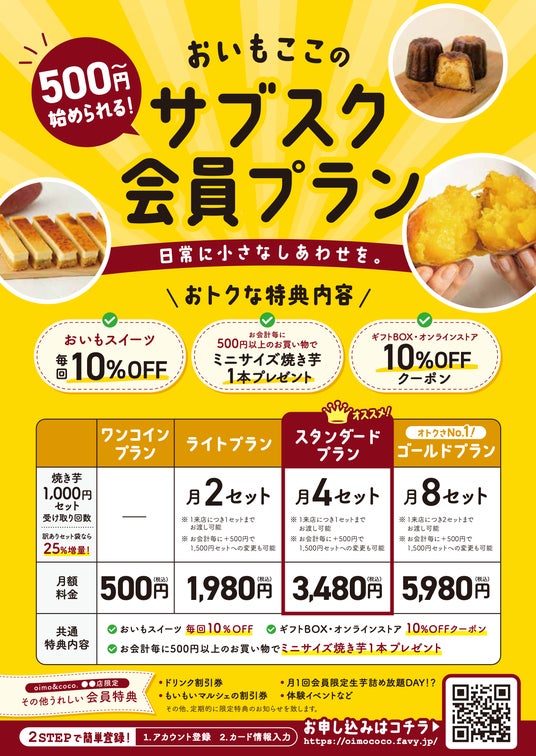 おいもをより日常の中で楽しんでもらう。スーパーやコンビニでも気軽に購入できるようにもなった中、より高品質で安定した焼き芋をプランによってはコストパフォマンス面でも負けないオトクさを実現している。