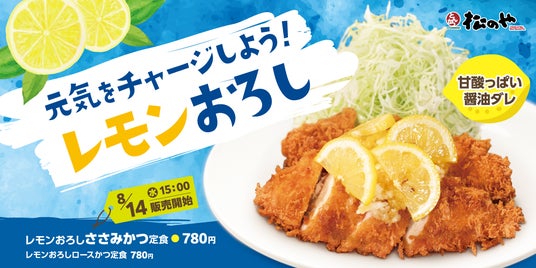 株式会社松屋フーズ(本社:東京都武蔵野市、代表取締役社長:瓦葺 一利)では、とんかつ専門店の「松のや」におきまして、2024年8月14日(水)午後3時より、「レモンおろしささみかつ定食」「レモンおろしロースかつ定食」を発売いたします。