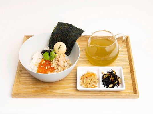 夏季限定「冷やし茶漬け」は、山本山が厳選した3種類の国産海苔と、冷やし玄米茶出汁がベースのお茶漬けです。こちらもカツオ・昆布・椎茸から取った自家製出汁に玄米茶を合わせました。玄米茶は冷やしても香ばしく、お米の優しい甘みを感じられる味わいが特徴です。ご飯は流水で締めてぬめりを落としているので、のど越しが良く暑い夏でもサラサラとお召し上がりいただけます。