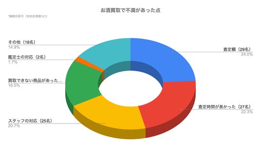 満足できた人が多い一方で、お酒買取の取引の中で「不満に感じた点」もヒアリングしました。