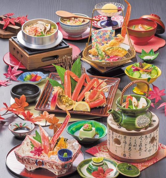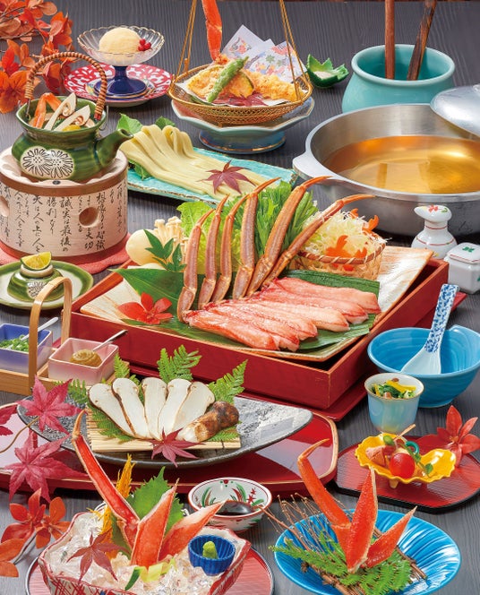 内容:ずわいと松茸しゃぶしゃぶ、松茸土瓶蒸し、茹でがに、かに刺身、かに天ぷら、小鉢2種、きしめん、デザート