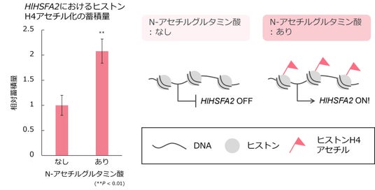 3)NAGによるストレス応答遺伝子の活性化には、生物種を超えて遺伝子の機能制御に重要な役割をもつエピジェネティック修飾※7が関与していることを明らかにしました。