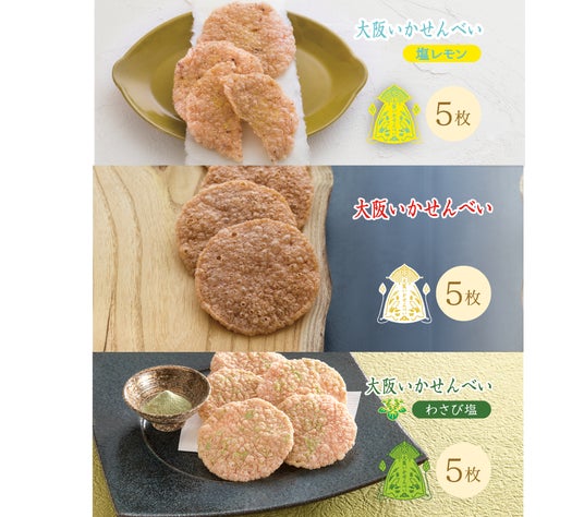 定番の「いかせんべい」にレモン香る「塩レモン味」とわさびを食べた時にツンと感じる味わいが