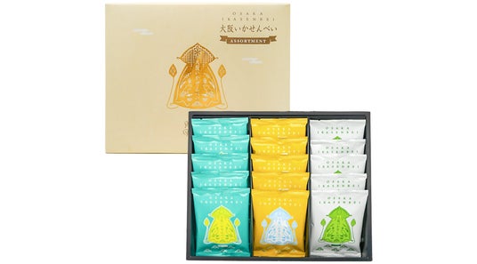 大阪いかせんべいは、1枚のせんべいにイカミンチをふんだんに使用し、じっくりと熟成させる特別製法によりイカの旨味を引き出しています。