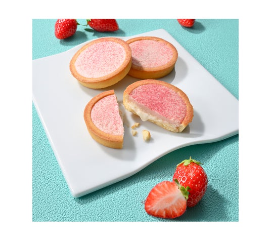 大阪産いちごの特製焼きチョコの下に、トロリとしたクリームチーズ味のチョコクリームをしのばせ香ばしいタルトに入れて焼き上げました。いちごの風味が引き立つよう、ラズベリーの甘酸っぱいパウダーをトッピングして、華やかで奥行きのある味わいに仕上がっています。