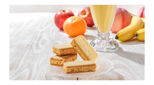 エアチョコにオレンジピール、りんごのフリーズドライを加えた ミックスジュース風味のまろやかなチョコを さっくりと香ばしいクッキーでサンドしています。