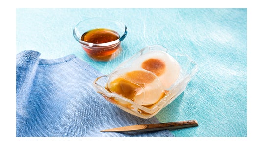 甘じょっぱいみたらし餡がぷるっと口当たりのよい半透明の生地で包まれています。見た目も涼やかな菓子で、そのままでも十分おいしいですが