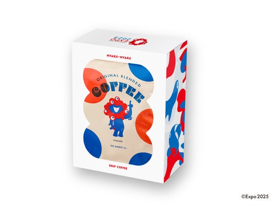 ミャクミャクの可愛さを活かしつつ、少しレトロなデザインに仕上げたドリップコーヒー。