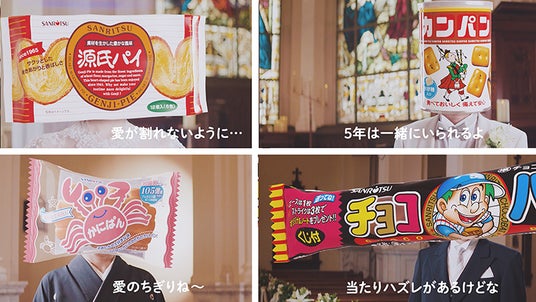 【タイトル】 『三立製菓のおかしなお菓子たち結婚式』篇 15秒