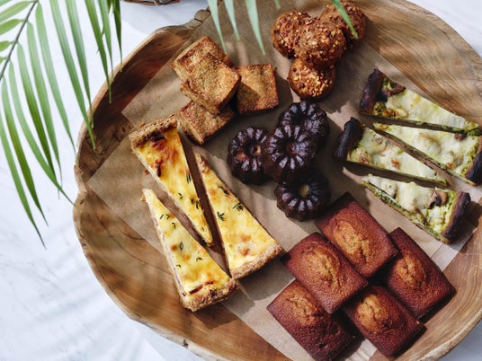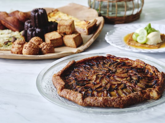 “カヌレ“、”シューパリジャン“、”季節のフルーツのガレット“、”フィナンシェレーヌ“、”スコーン“、”キッシュロレーヌ“、”チキンジェノベーゼのブリオッシュタルト”