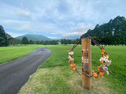 箱根外輪山に沈む夕日を眺め秋の風情を感じていただきながら、カートでゴルフ場内を回っていただき、お気に入りのスポットで記念撮影をしていただきます。撮影には敷地内の剪定作業で出た木の枝を使って制作した、特製フォトリースを使って撮影。雄大な大自然の中で自然素材のフォトフレームを使ったエコなイベント体験です。