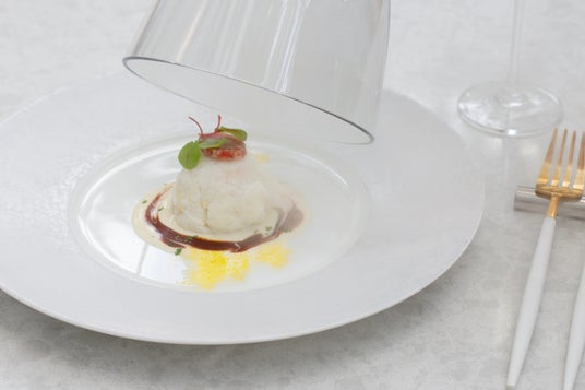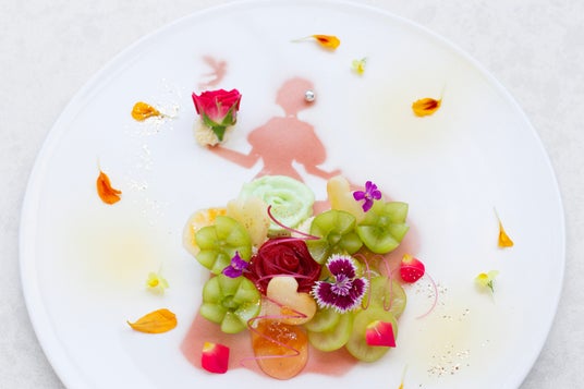 今回のシグネチャープレートは「魔法にかけられたプリンセス」がテーマ。煌めくダイヤモンドのようにカットされた「晴王」や、コンポートした林檎を丁寧に束ねた深紅の薔薇など、パティシエの魔法のような技術でお仕立ていたします。