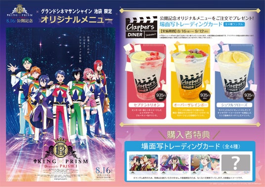 グランドシネマサンシャイン 池袋(東京都豊島区東池袋1-30-3)では8月16日(金)『KING OF PRISM -Dramatic PRISM.1-』の公開を記念して、8月16日(金)より、劇場内5階にあるカフェ「クラッパーズダイナー」にて公開記念コラボカフェを開催いたします。