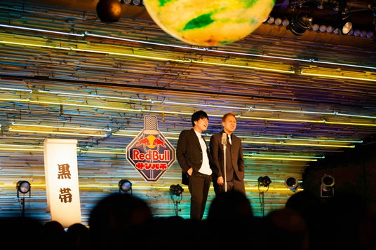 10分間の休憩タイムには、MCのZUMAひかるが登場。雑談やモノマネをした後、演者のサインが入ったRed Bullサンパチのオリジナル提灯を賭けてじゃんけんタイム! 見事勝ち抜いた女性に提灯がプレゼントされた。