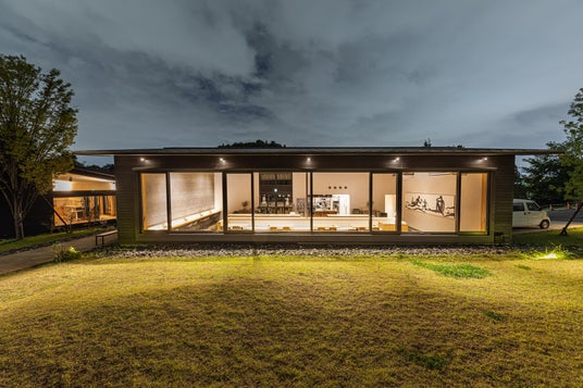 空気の澄んだ静かな公園に入ると、おいしい香りで満ちたカフェ・レストラン「44APARTMENT薬師池店」に公園映画館が出現。