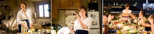 1949年、パリでフランス料理の虜となったアメリカ人女性ジュリア。彼女は名門ル・コルドン・ブルーで料理を学ぶと、家庭で誰でも作れる524のレシピを本にまとめて出版する。本はベストセラーとなり、彼女はテレビの料理番組に出演するなど一躍人気者となった。それから50年後のニューヨーク。小説家になる夢に破れた29歳のOLジュリーは、人生を変えるためにある無謀な計画を立てる。それは、365日かけてジュリアが書いた524のレシピに挑戦し、その過程を毎日ブログに綴ることだった…。『めぐり逢えたら』『ユー・ガット・メール』のノーラ・エフロン監督作品。恋や仕事に悩む女性たちの揺れる心を巧みに描くエフロンが、本作で実在する二人の女性の生き方を通して、幸せを見つけるための人生のレシピを教えてくれる。