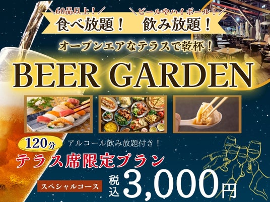 そしてこの度、ビールが最高においしいこの季節にぴったり!オープンエアなテラス席限定の特別プランが登場いたしました!